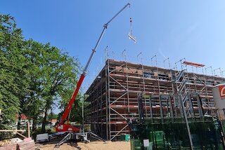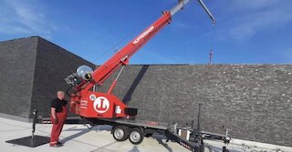 Auch auf schwer zugänglichem Gelände kann der Kran auf einem Anhänger, auch als Dachdeckerkran bekannt, problemlos